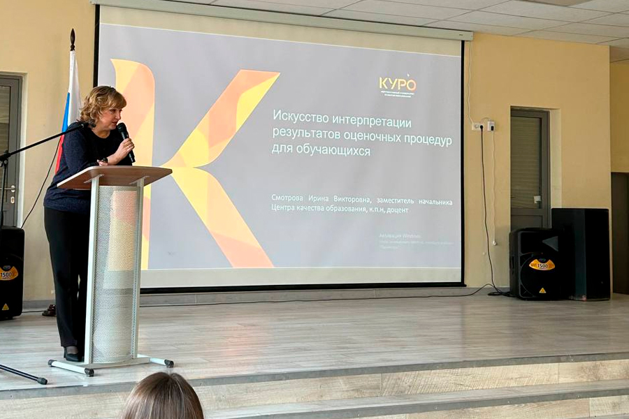 Людмила Викулова, начальник Центра качества образования, выступила с докладом о единых подходах к организационным мероприятиям по использованию результатов оценочных процедур, направленным на повышение качества образовательных результатов в системе общего образования, а также